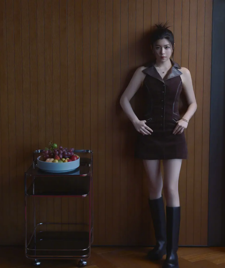 陈妍希穿无袖装,五官精致,眼神沉静,尽显清冷气质