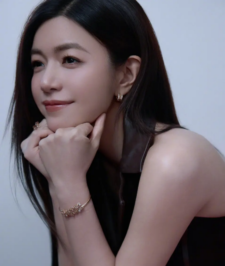 陈妍希穿无袖装气质恬静, 笑容温柔, 眼神明亮, 妆容精致